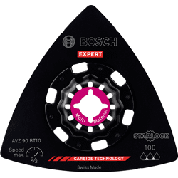 Hohe Lebensdauer beim Schleifen von verschiedensten Materialien! Die Delta-Form ermöglicht das Schleifen von Ecken und Kanten Kleine, aber harte Schleifarbeiten zum Entfernen von altem Material und zum Vorbereiten von Oberflächen sind mit herkömmlichen Schleifmaschinen oder von Hand fast unmöglich zu erledigen. Selbst wenn du die Oberfläche erreichen kannst, reißt das Schleifpapier ein. Mit der EXPERT Sanding Plate kannst du jedoch mit deinem oszillierenden Multifunktionswerkzeug Ecken erreichen und schwierige Materialien schleifen. Die groben, offenen Körner des RT2 (Körnung 20) eignen sich am besten zum Entfernen von Mörtel hinter Fliesen, von Teppichkleber oder für die Grobbearbeitung von Holz. Der RT4 (Körnung 40) eignet sich am besten zum Entfernen von dickem Lack, er kann aber auch mit Mörtel und Kleber umgehen. Der RT6 (Körnung 60) ist der Lackspezialist, während der RT10 (Körnung 100) ideal zum Schleifen und Vorbereiten sauberer Holzoberflächen geeignet ist. Überragende Lebensdauer dank Bosch Carbide Technology